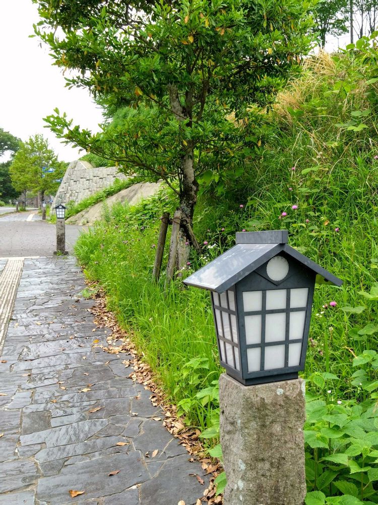 ④高千穂神社の近くの歩道に今風の灯籠がたくさん建っています。