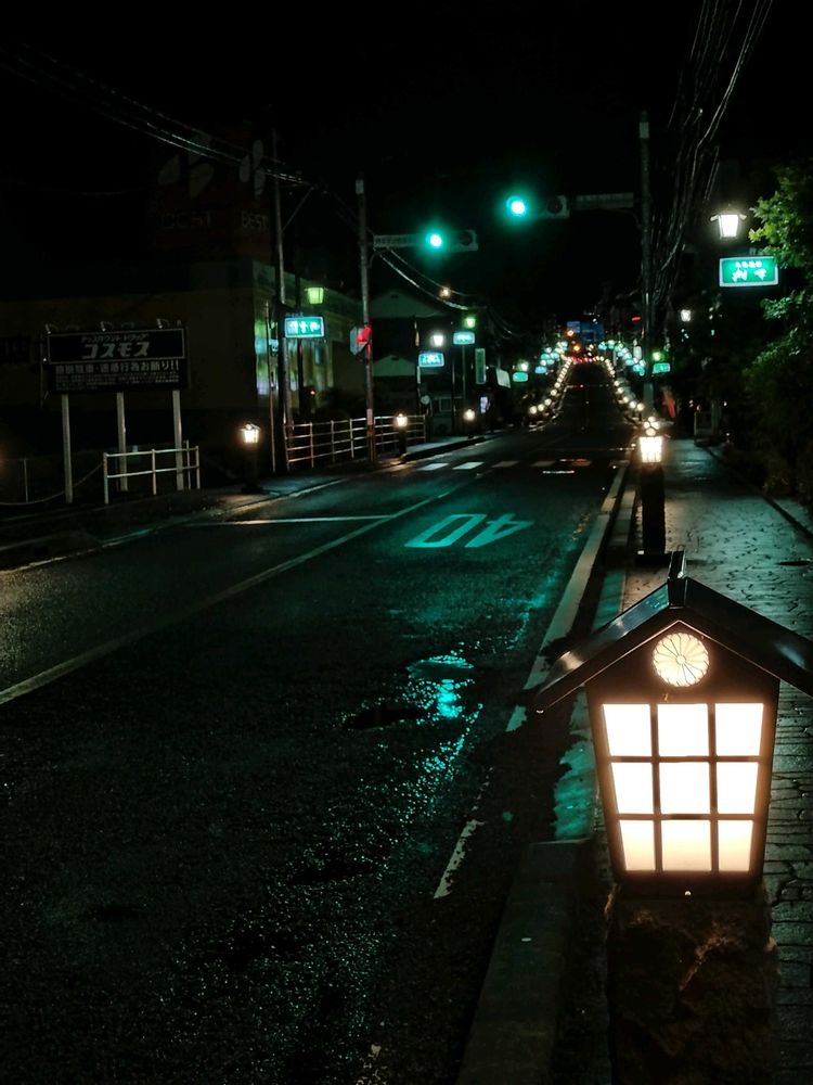 ⑤午後9時頃 夜神楽が終わりホテルへの帰路、その灯籠に灯りがついて素敵でした🤩