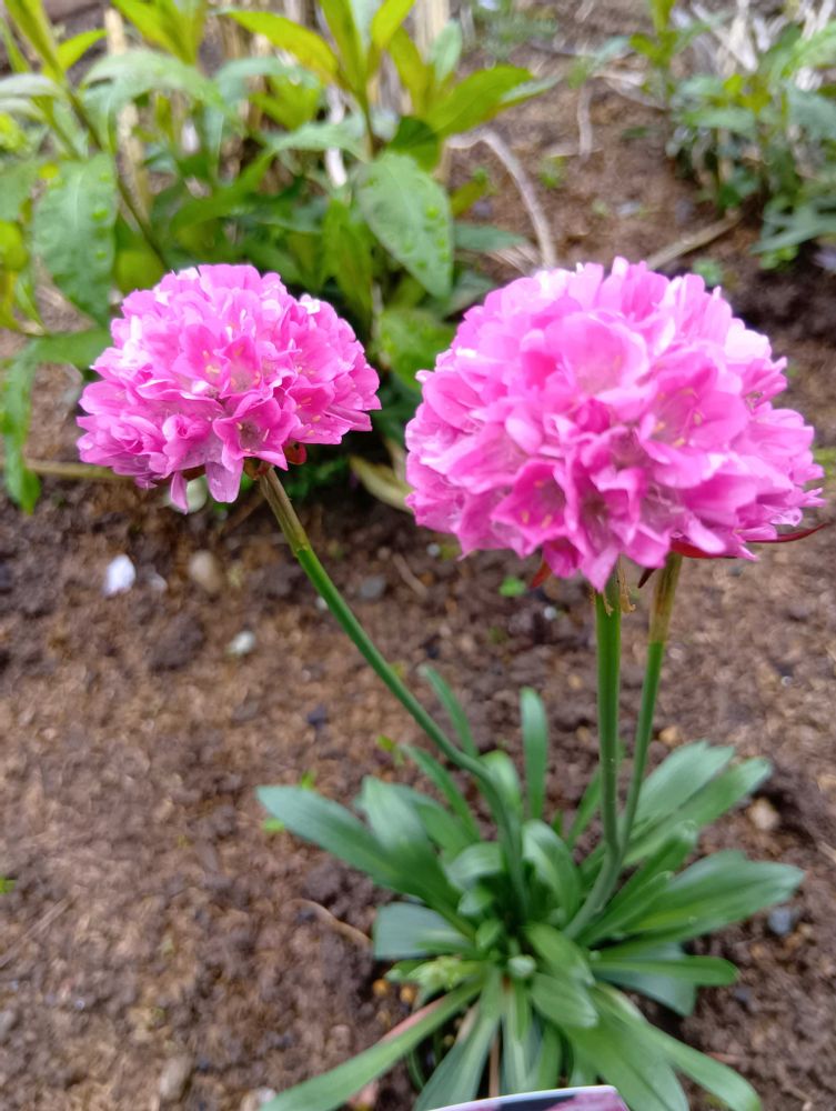 可愛いピンクと白のアルメリア 丸いボールですね (><)👍🏻⭐️(◍˃ ᵕ ˂◍)