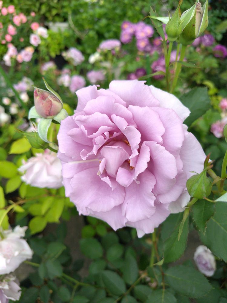 アパートの専用庭で、四季咲きバラをメインに約60鉢育てています。紫・白・桃色中心に集めて、香りが気に入ったり出先で一目惚れした植物たちです!