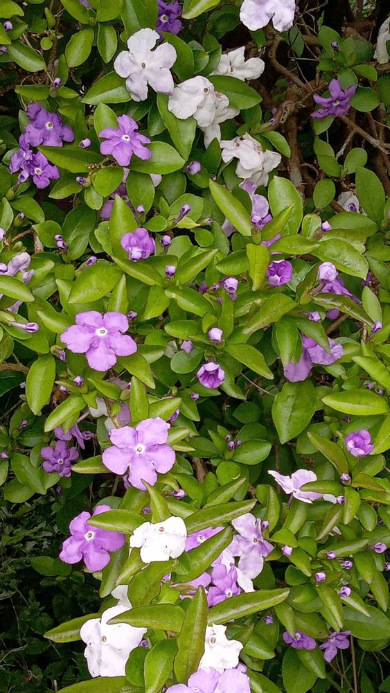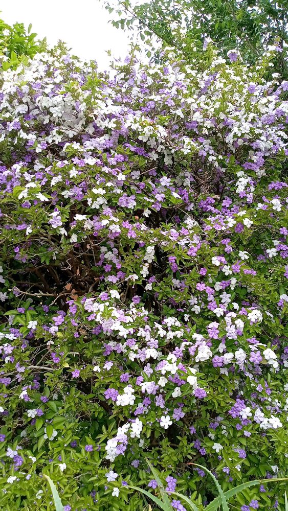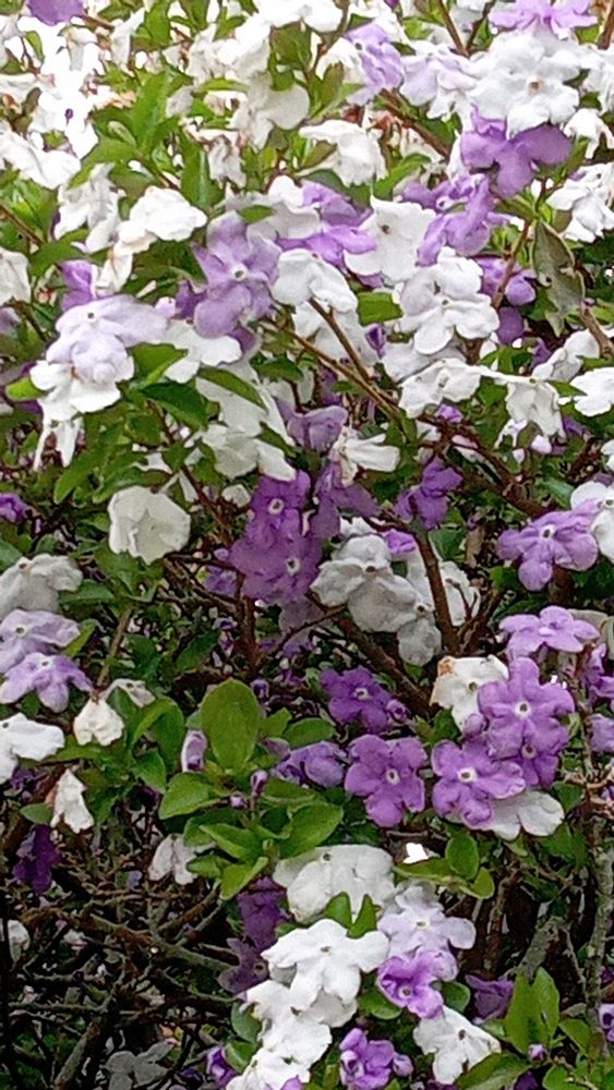 ③④⑤は、ニオイバンマツリの花。初めは濃い紫で、日が経つとだんだん薄くなり、最後は白くなり、枯れてしまう。甘いいい匂い🥰がする、好きな花の一つだ。⑤は、面白い形の蕾がついている枝。