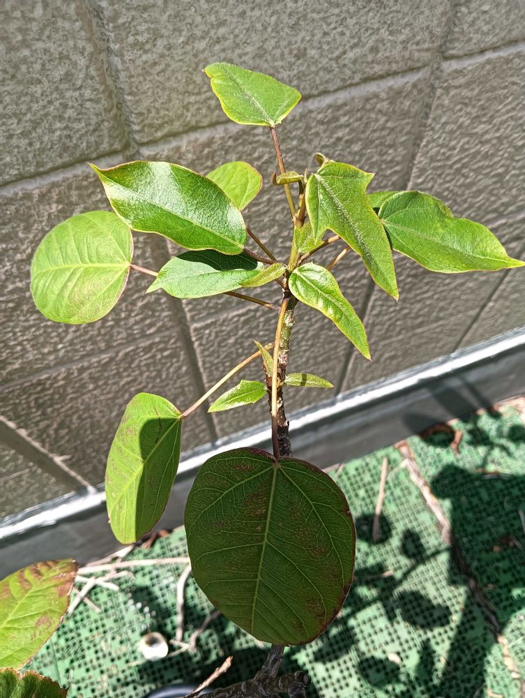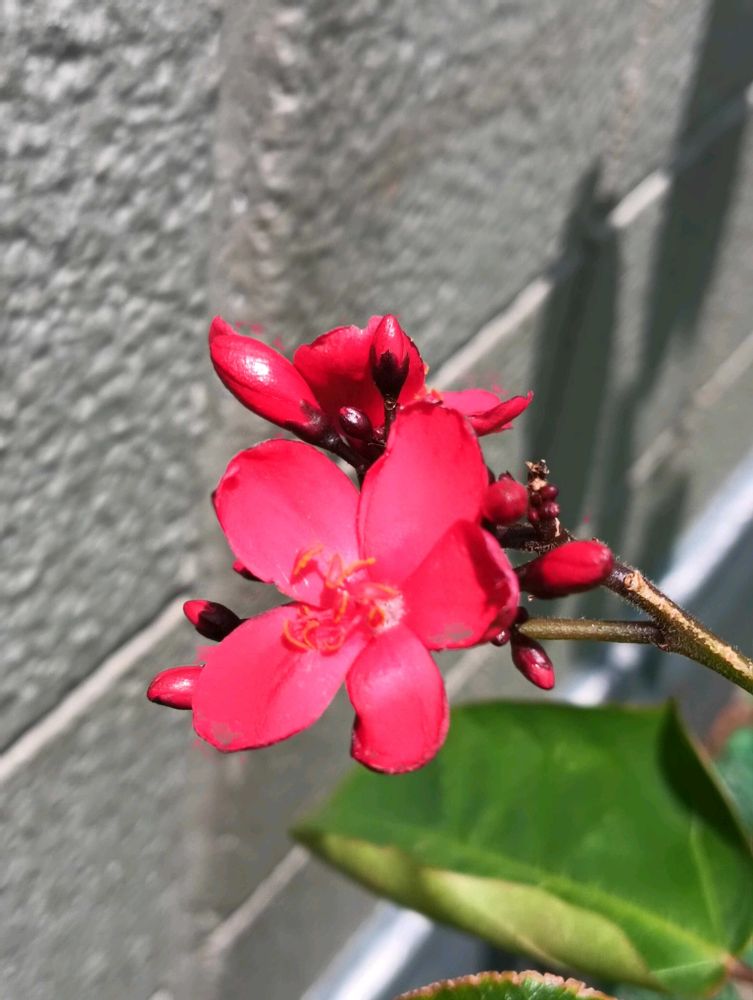 テイキンザクラが咲き始めました。キューバ原産でトウダイグサ科の植物で真っ赤な花を周年開花で咲かせます。ちなみにテイキンとはバイオリンの事で5枚弁の花がまるで桜を連想させる事から名付けられました。第二次大戦中に南方戦線の兵隊がこの花を桜のようだと偲んだそうです!
