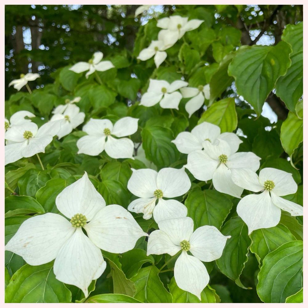 職場の近所の山沿いに大きなヤマボウシの木🌲ピンクと白が並んで咲いてます♬ヤマボウシの木は高くてお花がなかなか近くで見れませんでしたが💦ココは下から枝が広がるようで〜どうぞ見て〜❣️とヤマボウシが言ってるようでした😆♬
