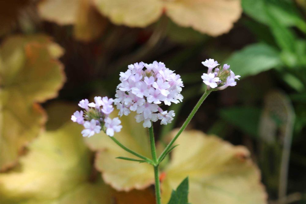宿根バーベナがヒューケラの間から顔を出してきました。