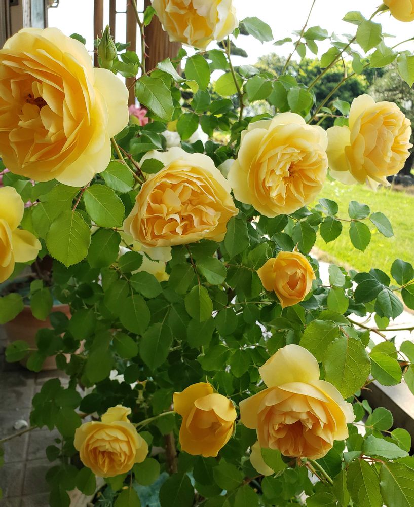 玄関アプローチ,バラ クリーミーエデン,グラハム トーマスの投稿画像