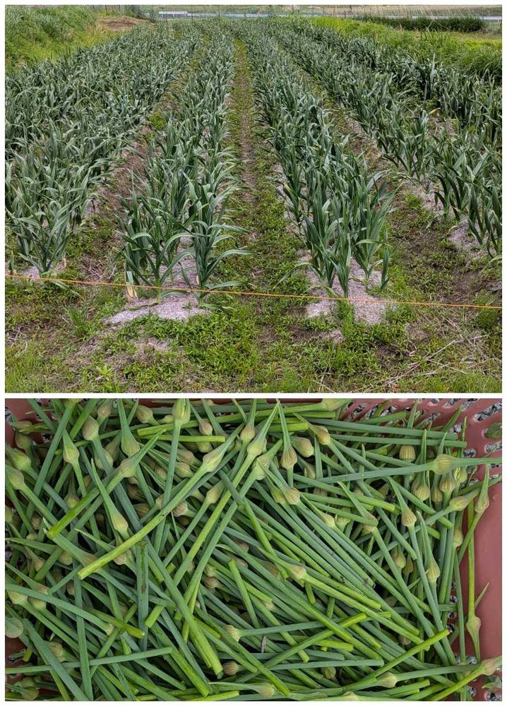 一枚目上の写真の畑のニンニクの芽を取ること🌱🫲