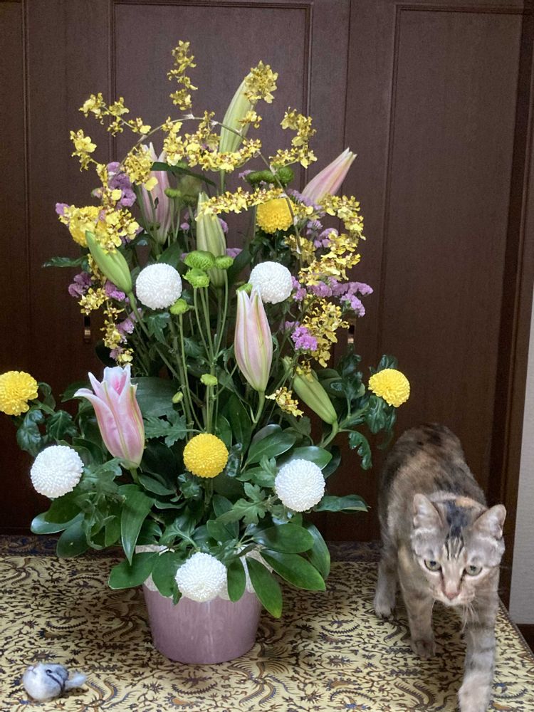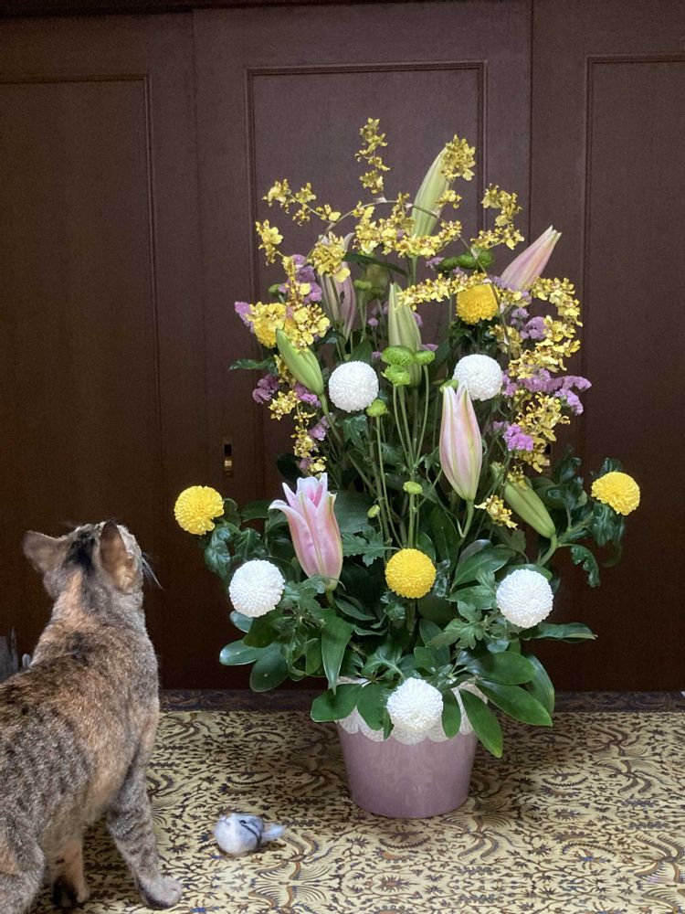 ここで使っているオンシジュームは家で咲いた花をカットしたものです