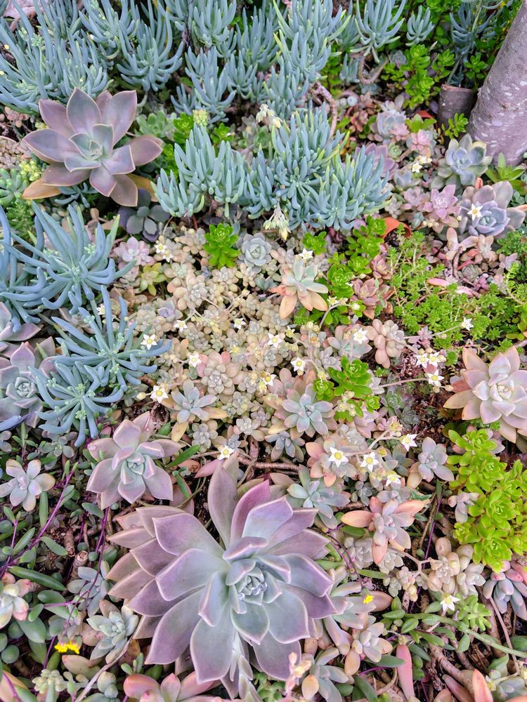 北側花壇の地植え多肉ちゃん達の向かって左側です😻🩵🤍🩷💜💛