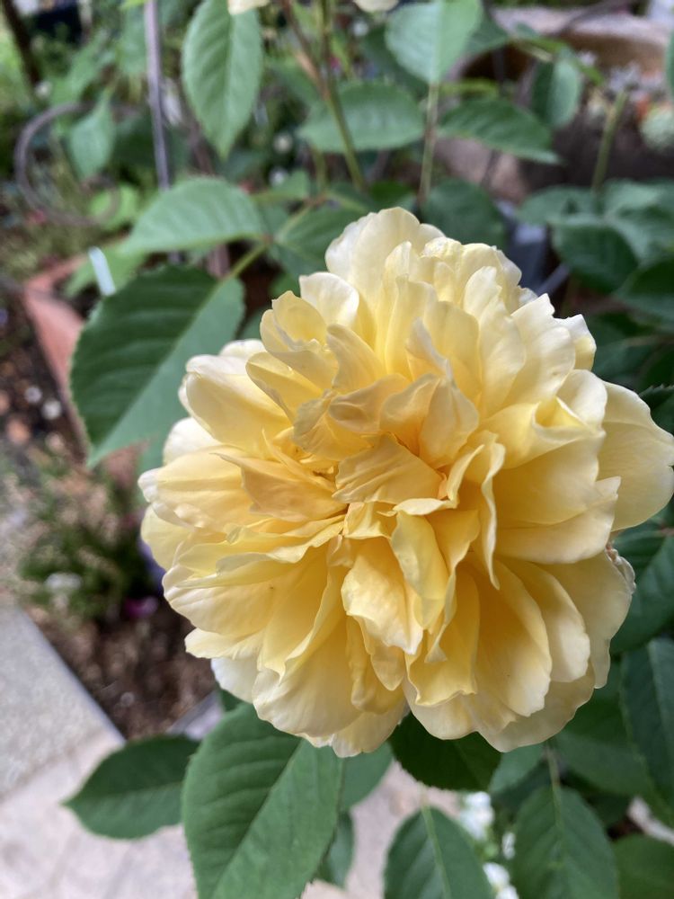 主人の誕生日にプレゼントしたリッチイエローの薔薇。凛とまっすぐ立つ姿を見て決めました。(薔薇の話)😆🌹💛🍃
