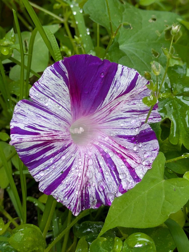 アサガオ 江戸風情 零れ種から、日陰で草丈低く陰で咲きました。