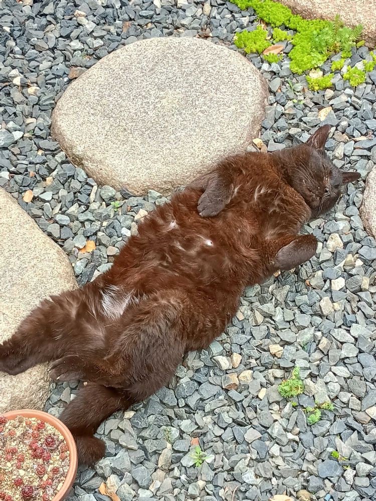 庭に何時も落ちてます。家の中にいる時は寅一にヘッドロックを受けるハメになるので出てばかり😓