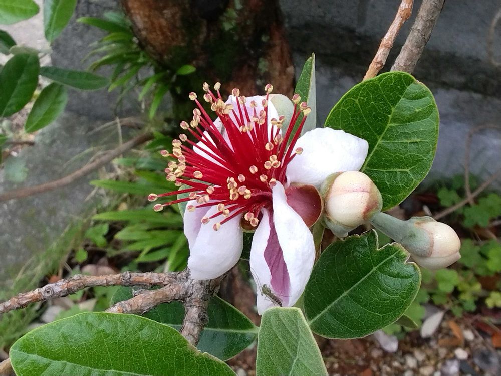 フェイジョアは花びらも食えるんよな。面倒だから食わんけど。