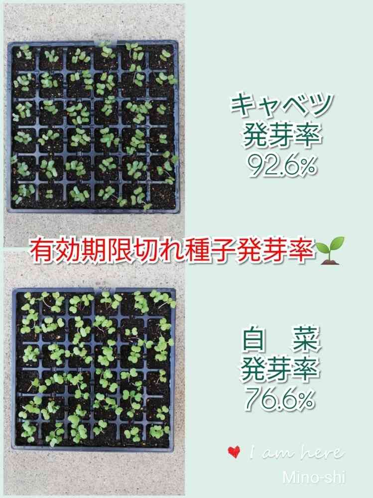 🔹発芽率は、メーカー発芽率に対して、キャベツ🔺、白菜🔻。白菜にしても、若干のダウンである。問題なし。