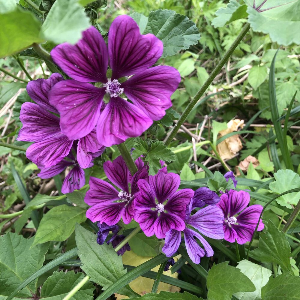 花が増えるゼニアオイ。自身の大きな葉で花が隠れるのだけが惜しい。