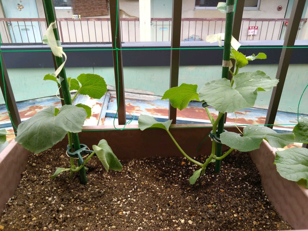 定植3日経ちました。親蔓が少しずつ伸びて来てます。