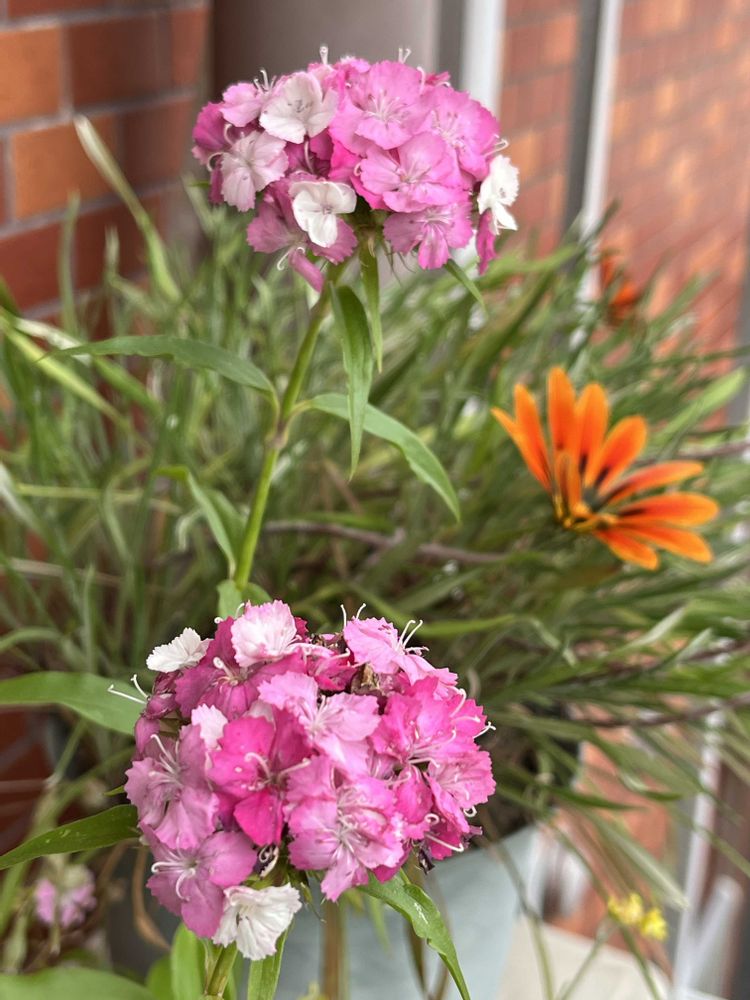 ヒゲナデシコもガザニアも同じワイルドフラワーの種から生き残ったものです。