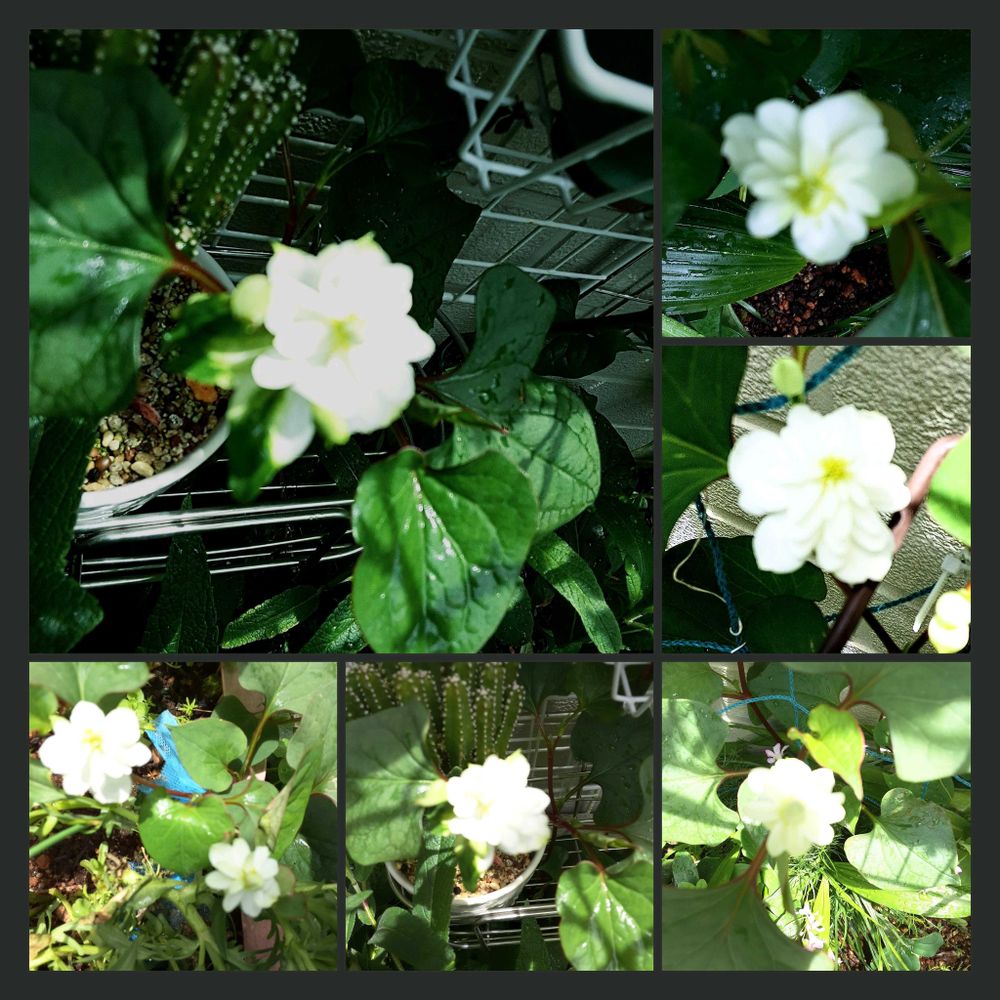 お向かいさんから以前頂いた((八重のドクダミの花が)チラホラ咲き出しました🎶🌸✌️チッチャクテでもゴージャス!?やっぱり可愛いですね😘一重はまだみたい!暑くなってきたけど腰痛が少しよくなってきたので風が優しく感じます🎶🎶