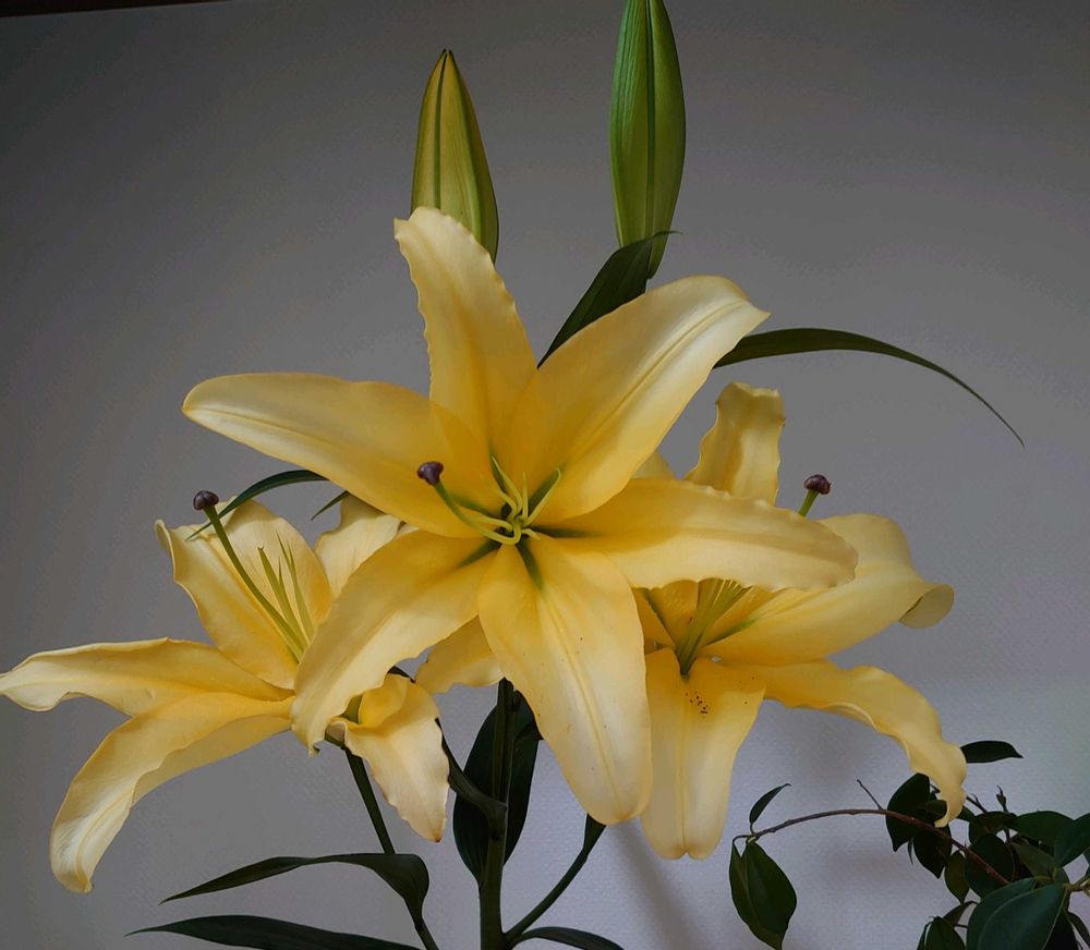 知人からいただいた一本の百合、立派に3つ咲きました。