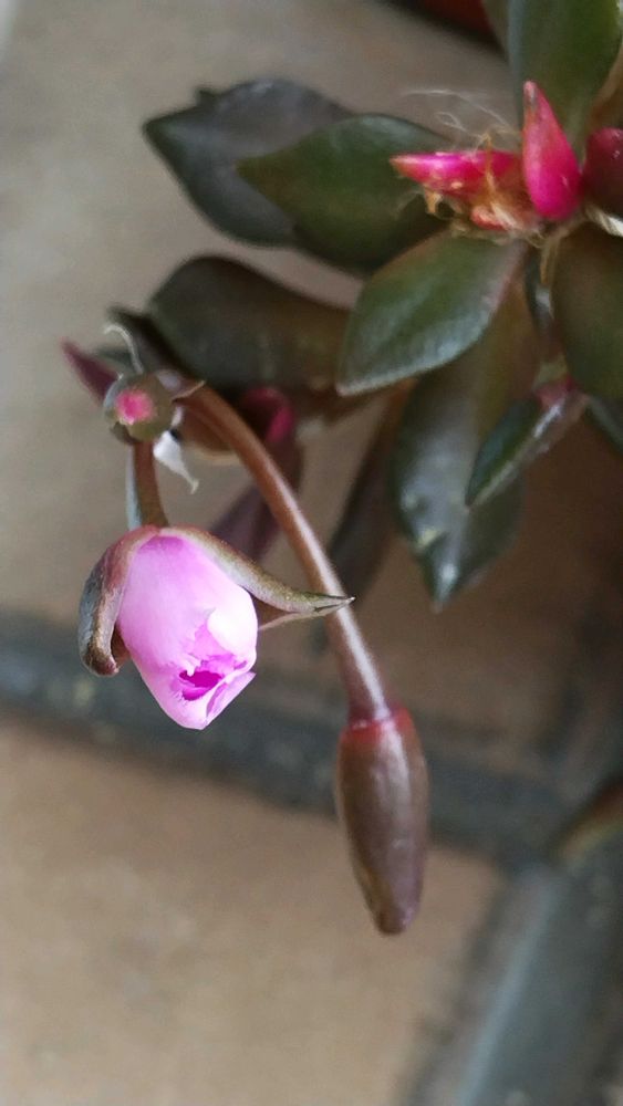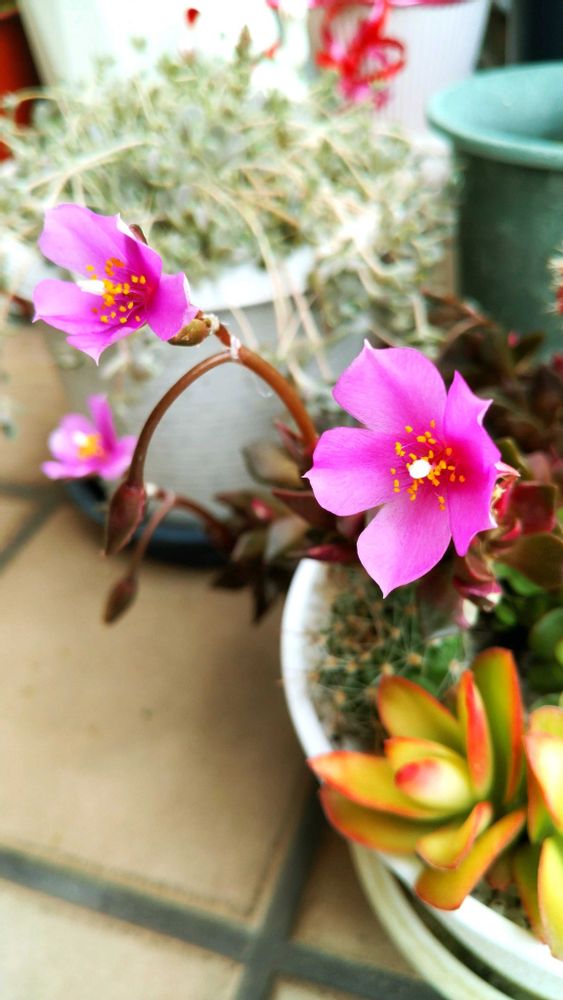 外出先から帰宅すると、ピンク色の三輪の可愛い花を咲かせていました