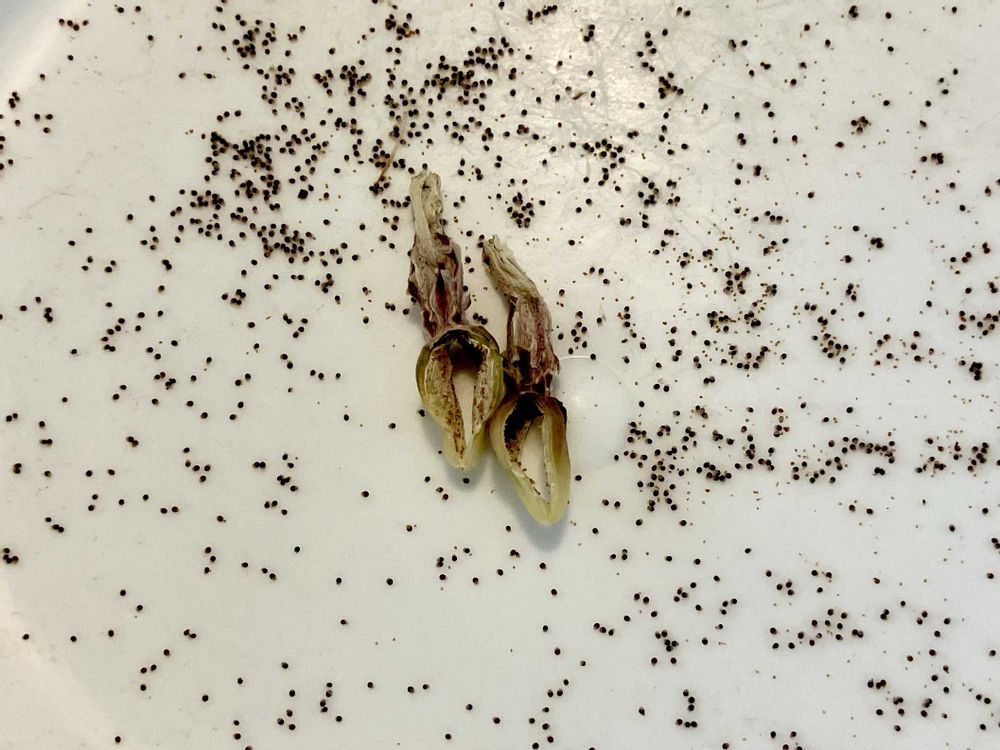 2. 爆発した種鞘と種 チッサ〜(>_<)