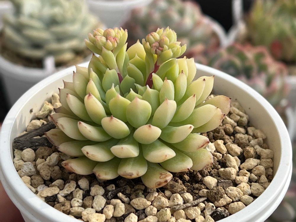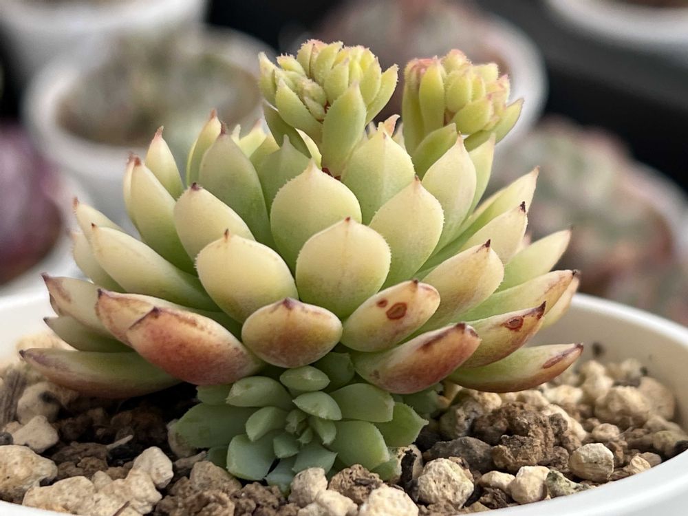 名前通り小さめでちょこんとしてて可愛いです💖カンテは粉物なので雨水&葉水厳禁にしてるから雨晒しでは育ててませんよー😊