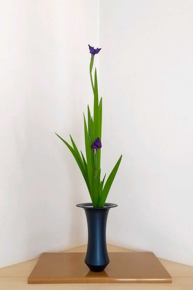 一般的に花菖蒲は男性らしく、燕子花は女性らしく生けなさいと言われますが、燕子花なのにどこか元気過ぎる😅