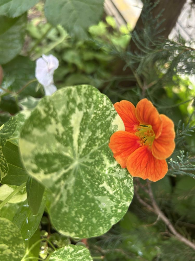 愛ピーゼラニウム裏側から撮るなんて素敵🥰ゼラニウムもナスタチウムも素敵😍