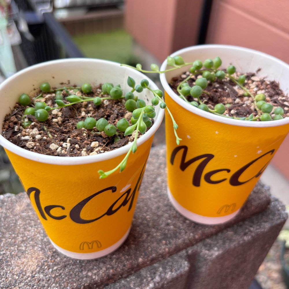 ❶❷マックのホットコーヒーの容器 強度がありそうなので底穴を開けて🕳️🕳️🕳️作りました 根付いた様ですよ🟢