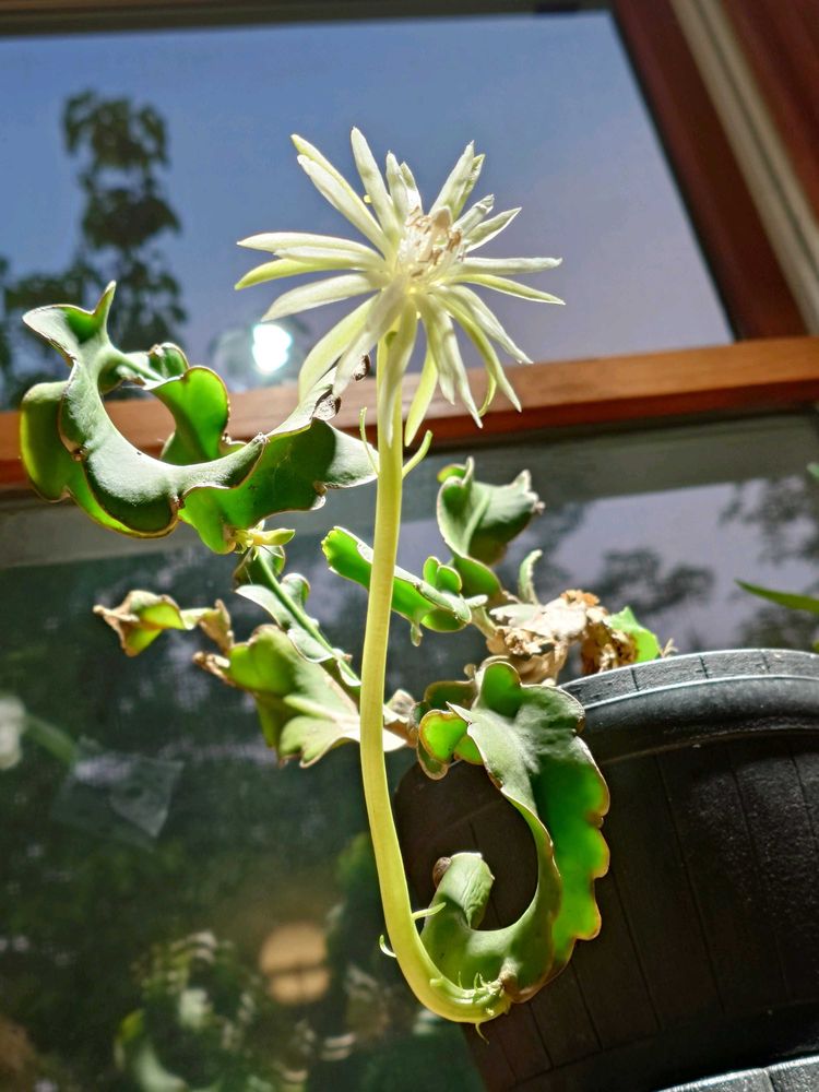 今まで葉が邪魔だとカットしていたからか、23~24年間咲いたことがなかったミニドラゴンフルーツ。