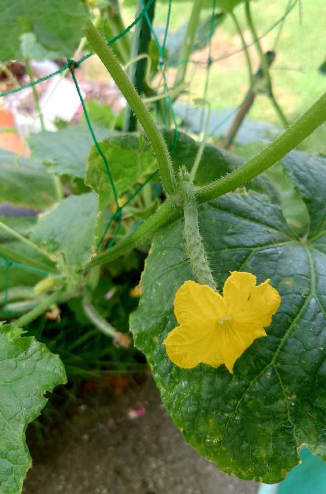 グリーンカーテン用のキュウリ🥒が順調に成長中!