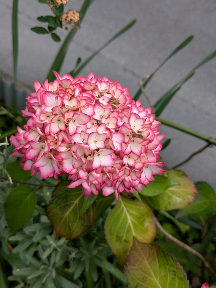 うちの花壇はアルカリが強くアジサイは赤系です。