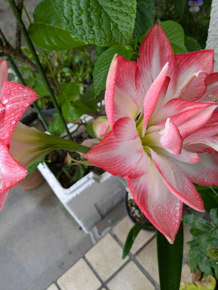 アマリリスは2つ揃って💞中の蕾が1輪追ってます🎶