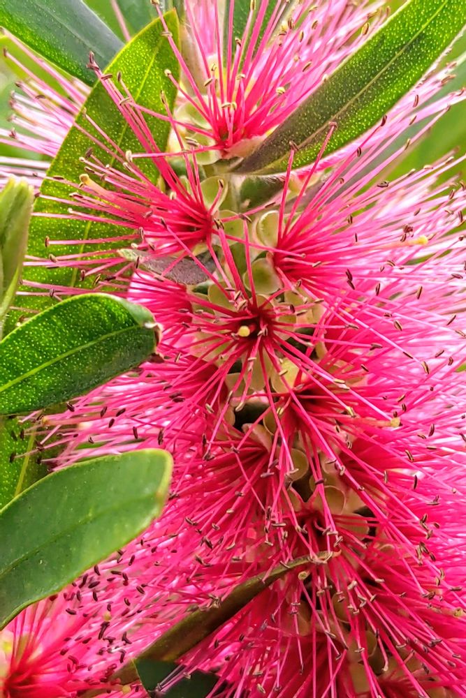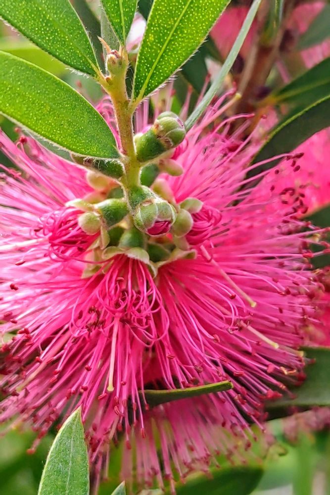 真っ赤なブラシノキもあるけれど、これはピンク色。