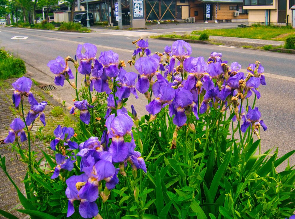 なるほど 道路際の花壇で咲いてました この時期ジャーマンアイリスってのが多いみたいですね 我が家にはシロアヤメかあるみたいですね?😂