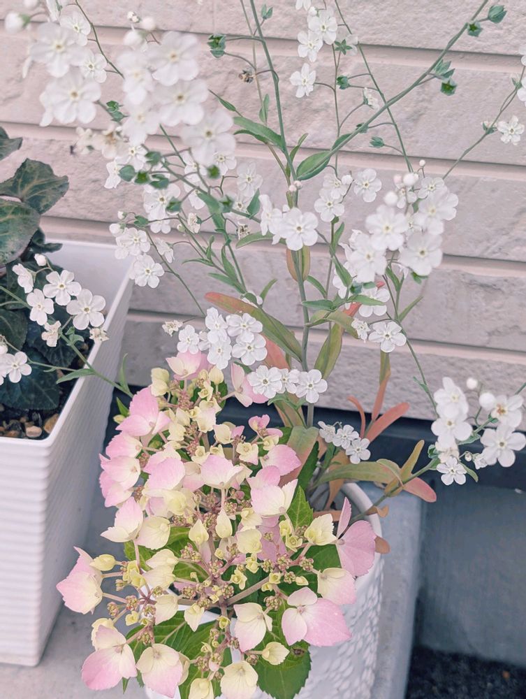 さん、おはようございます😊たまたま紫陽花の鉢に、こぼれ種で咲いてくれました✨紫陽花の寄せ植えったなかなか実現しないので嬉しいんです😚