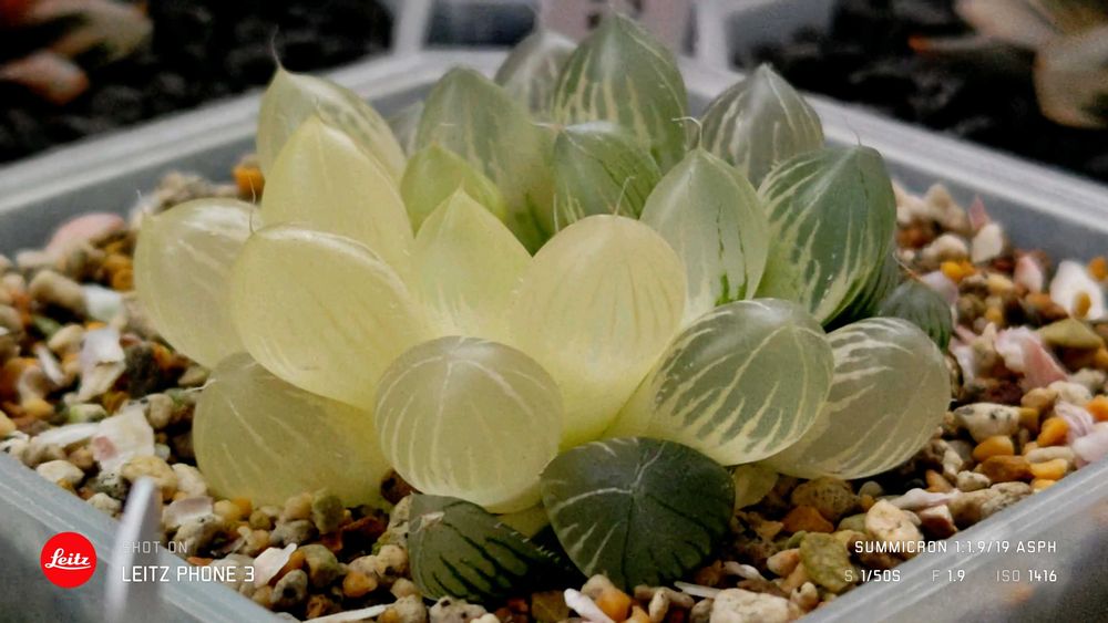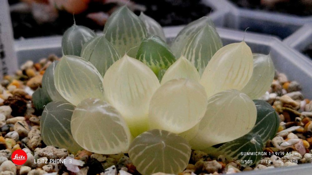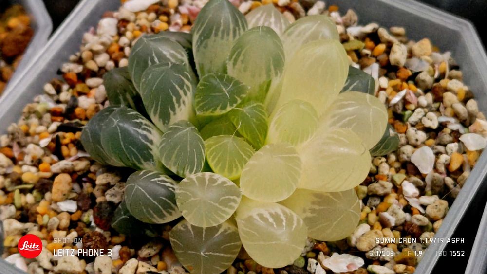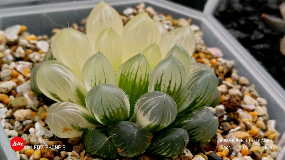 この株ブラックオブツーサ錦×白蛇伝も全斑葉が多くて、諦めモードになってましたが、真上からのアングルを見た時 新葉が葉緑素有りの葉をまだ出してくれてる様な気が…🤔🤔