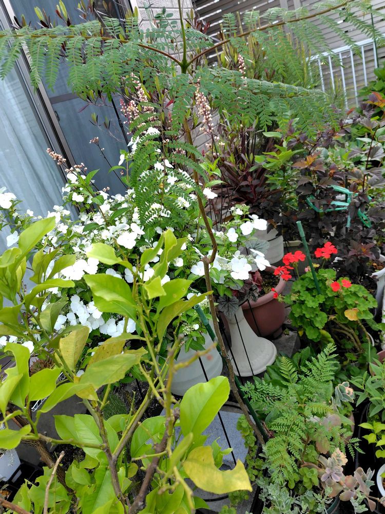 2枚目、ジャガランダを全面に配置。今まで寒さに弱いからと、他の大鉢と共存させてたから、ヒョロヒョロ枝に💦