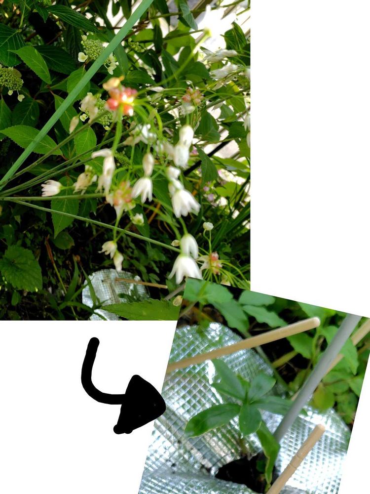 足下(鉢上カバー)シートが見つかり、いざ使おうと思ったら、ピンが無く……ズボラ〜な私は、購入まで割り箸で凌ぎます。ちょっと周りが高身長に囲まれてるから、埋もれそう💦