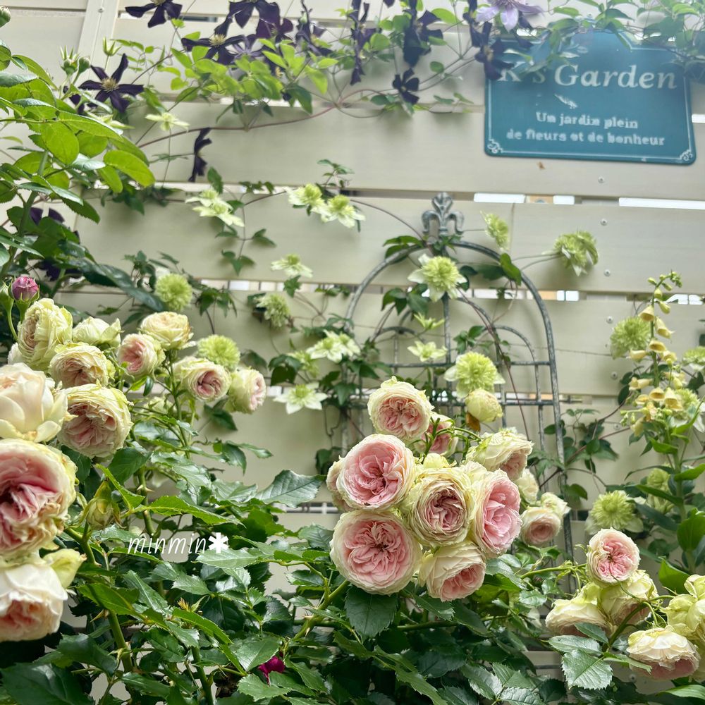 シロマンエは鉢にミニフェンスを建ててます。クレマチスもついつい増えていきます😆