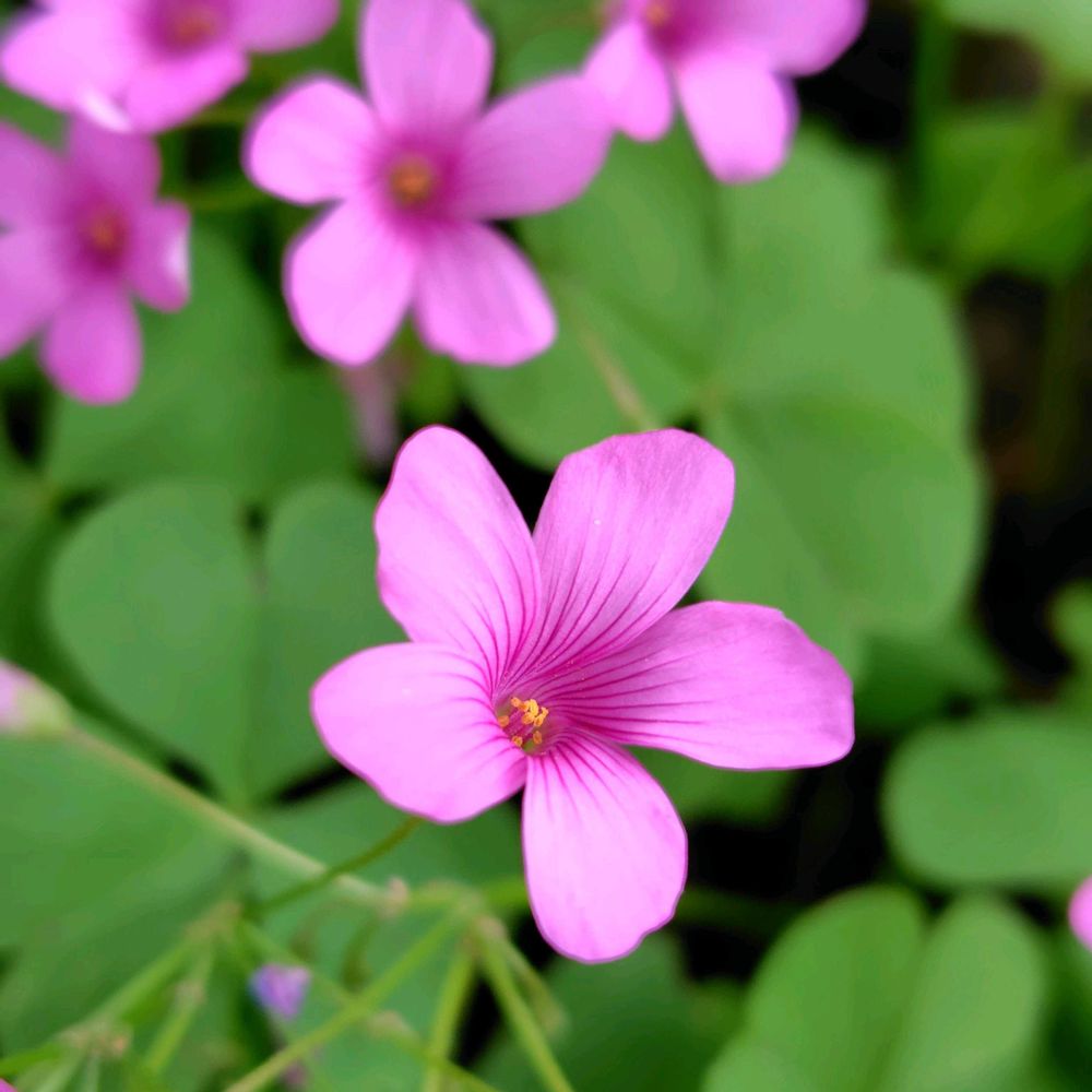 ムラサキカタバミ⇒花の中心が薄い緑色。