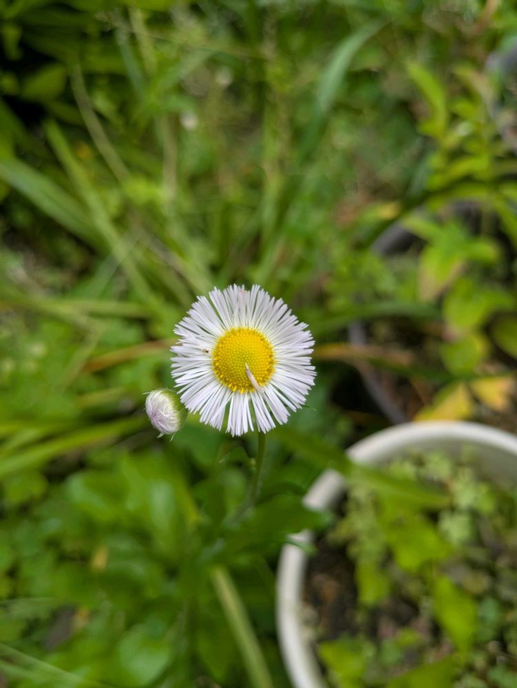 うちに珍しいハルジオン、初めて庭で咲きました。