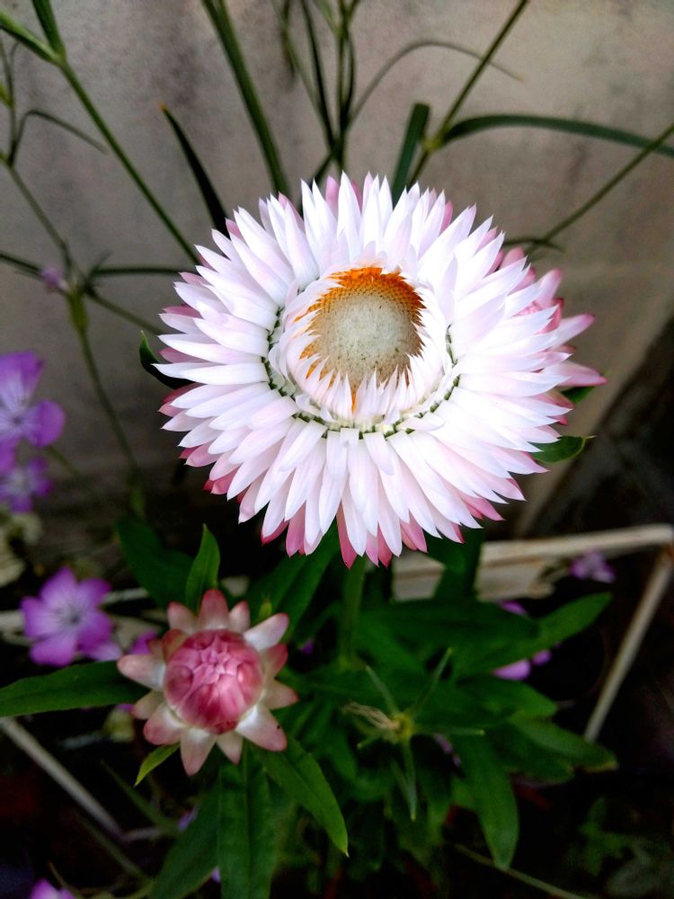 サカタのタネさんのミックスフラワーガーデンの種からヘリクリサムが咲き始めました🌸