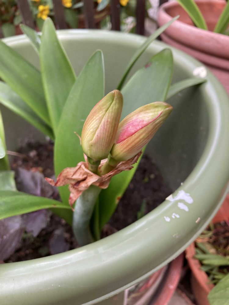 可愛い花芽💕💕ちゃん。アマリリスのお花がどのように咲くのか楽しみですねー😊😋