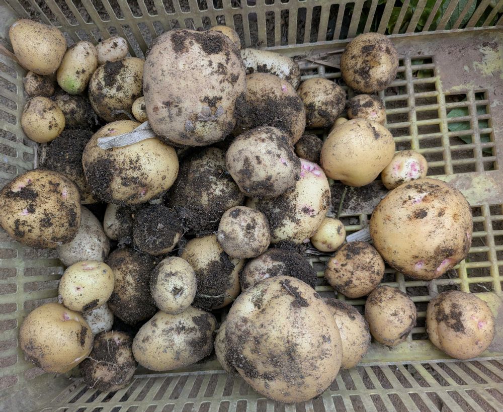 散歩で破竹のタケノコをゲット(笑)したので庭のジャガイモほじってみました、