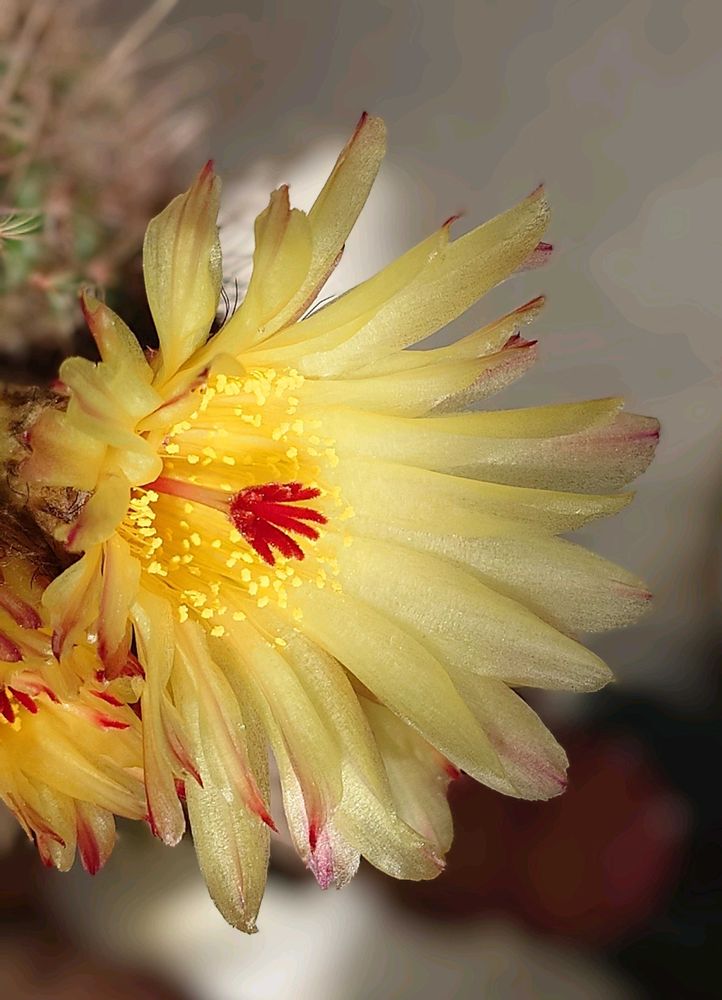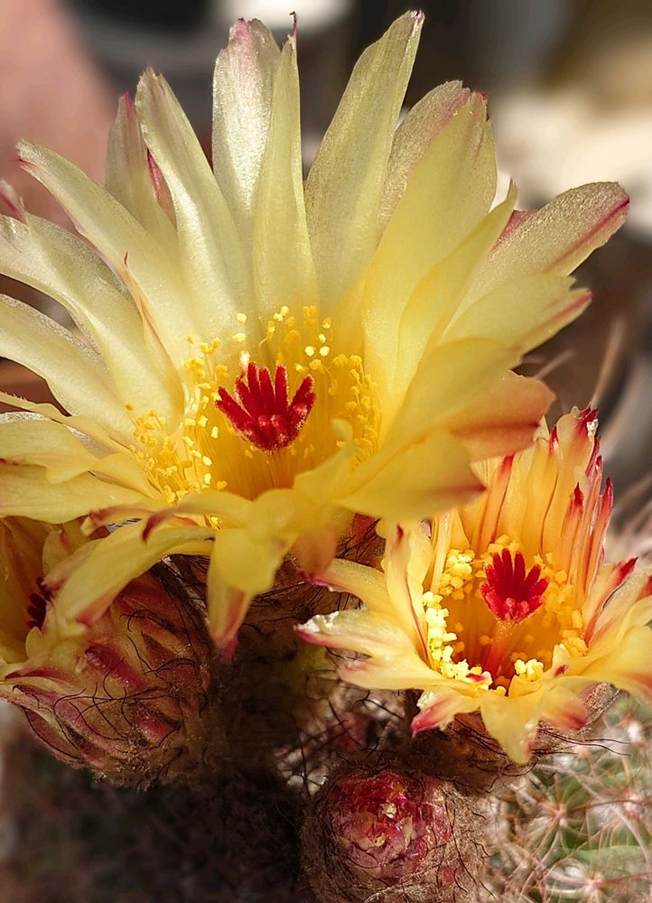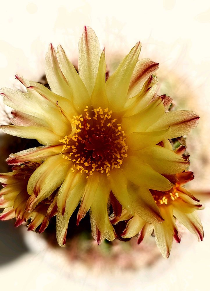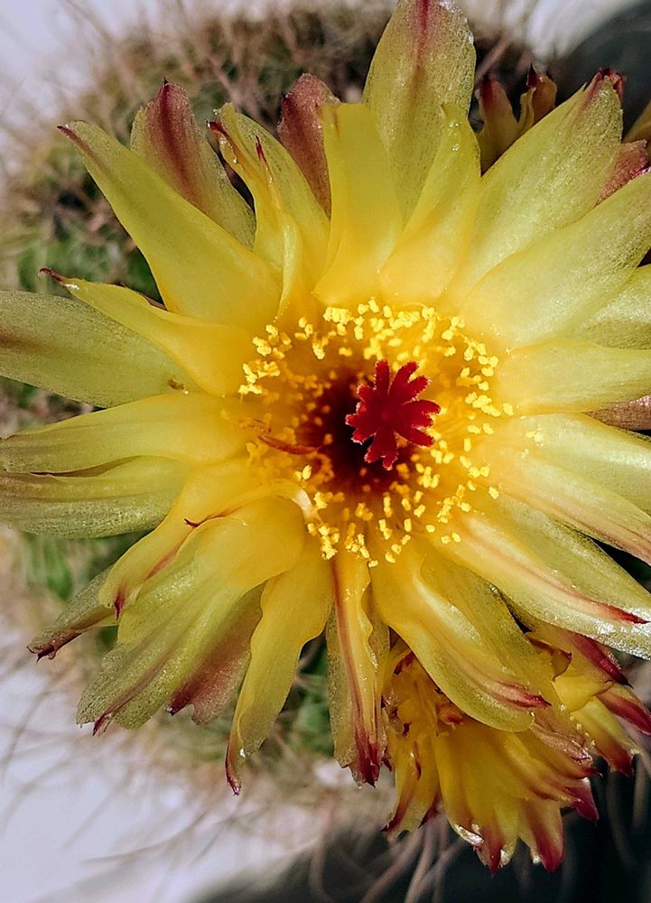 パステルイエローの花弁先にほんのり淡い🩷の口紅💄