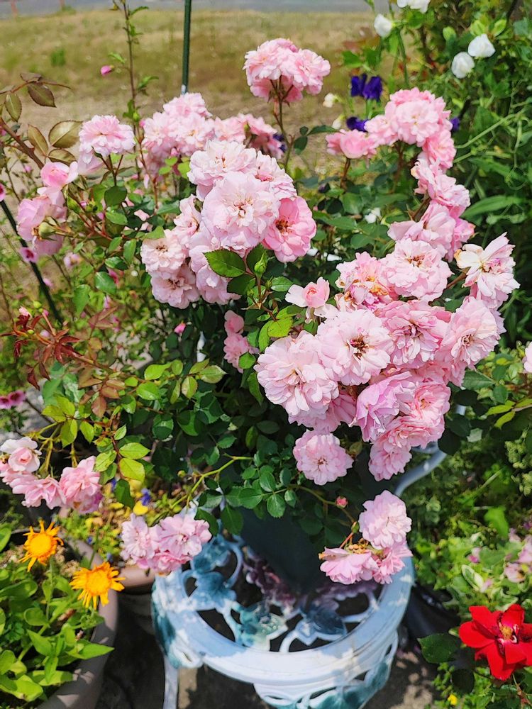 同じく遅咲きのボニカ'82も終わりかけですが頑張ってくれてます。わっさわっさとブーケのように咲いてくれています。