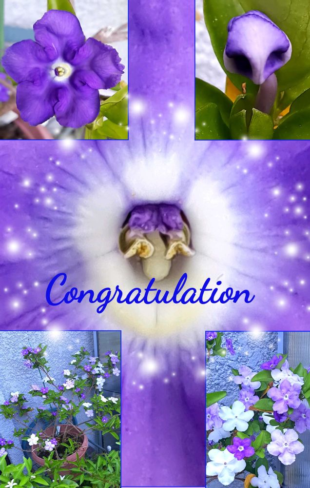 チーム・ブルーの花友さんのキリ番お祝いpicになります💜🤍💚