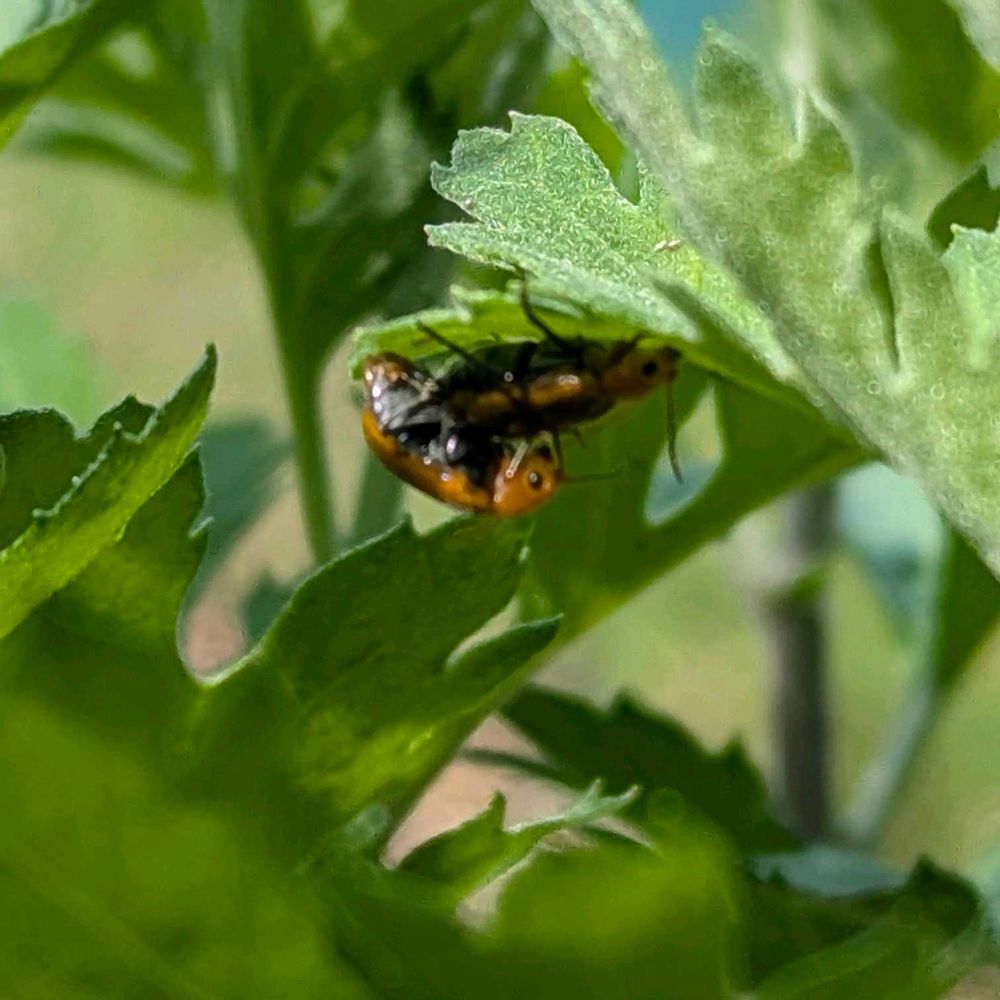 このウリハムシは人の気配を感じると直ぐ逃げるので 水やりの時離れた場所からシャワーを掛けて 動きを鈍らせて退治します!