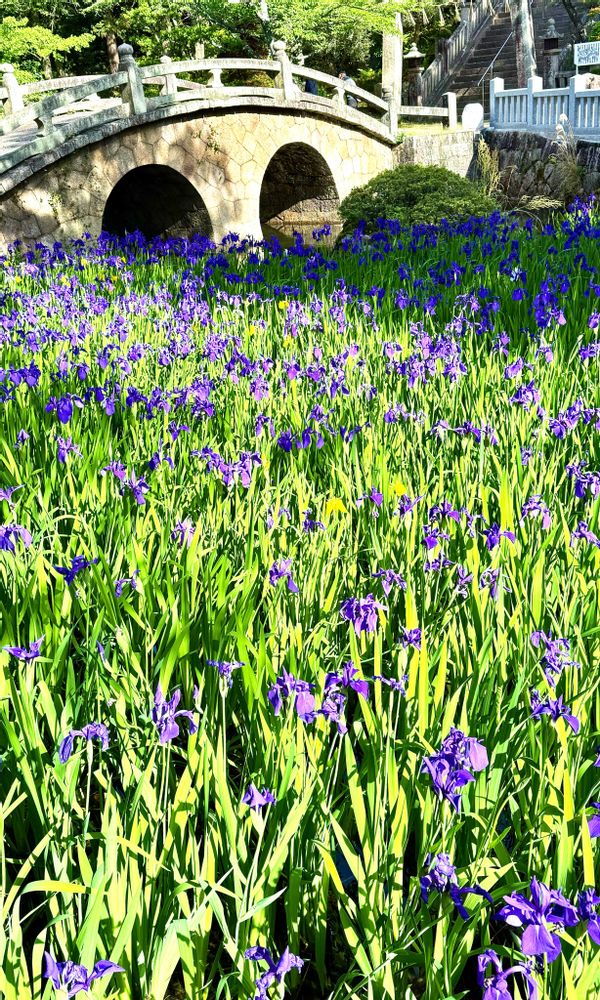 眼鏡橋とカキツバタの群生の調和が素敵💕ですね😌💗