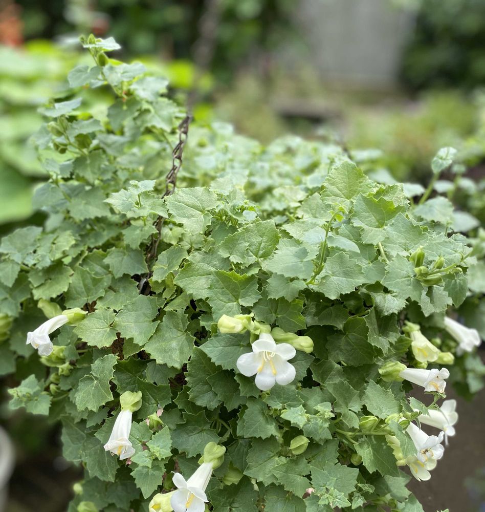 まだ見たことのないお花。吊り鉢にモリモリ繁って、可愛い花が咲いて🙌🙌